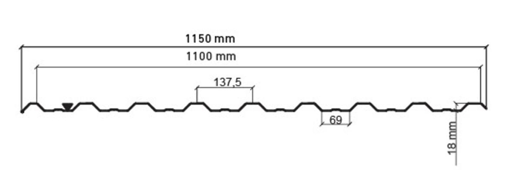 Lățime totală panou: 1150 mm